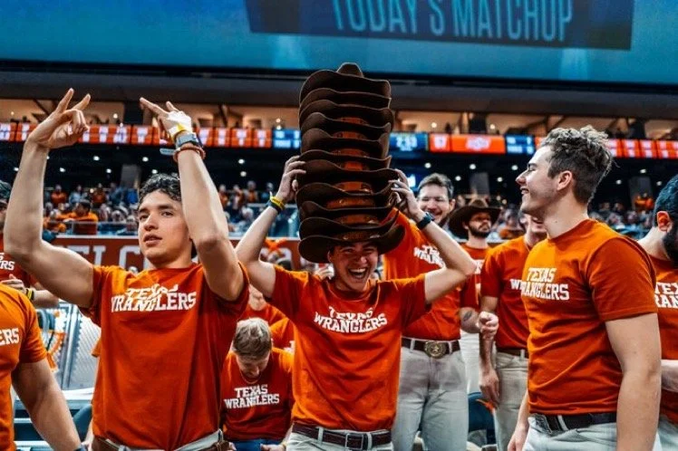 The Texas Wranglers serve as the official spirit organization of the UT Men’s Basketball Team. The Texas Longhorn basketball program is historically renowned, and our organization takes pride in supporting the team in any way throughout the entirety of the season. Catch us sitting court-side at the Moody Center, hyping up the team at every home game!